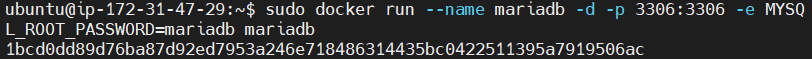 docker run --name mariadb -d -p 3306:3306 -e MYSQL_ROOT_PASSWORD=mariadb mariadb