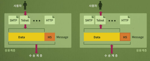 - 이 계층부터 메시지 포맷이 나타남. 헤더가 존재