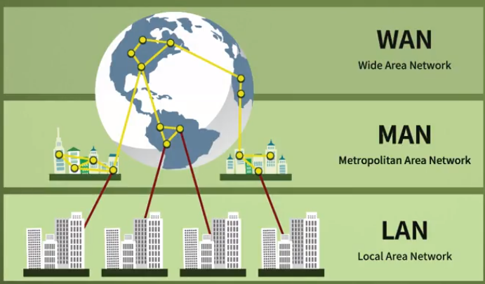 - 일반적으로 LAN, MAN, WAN으로 분류